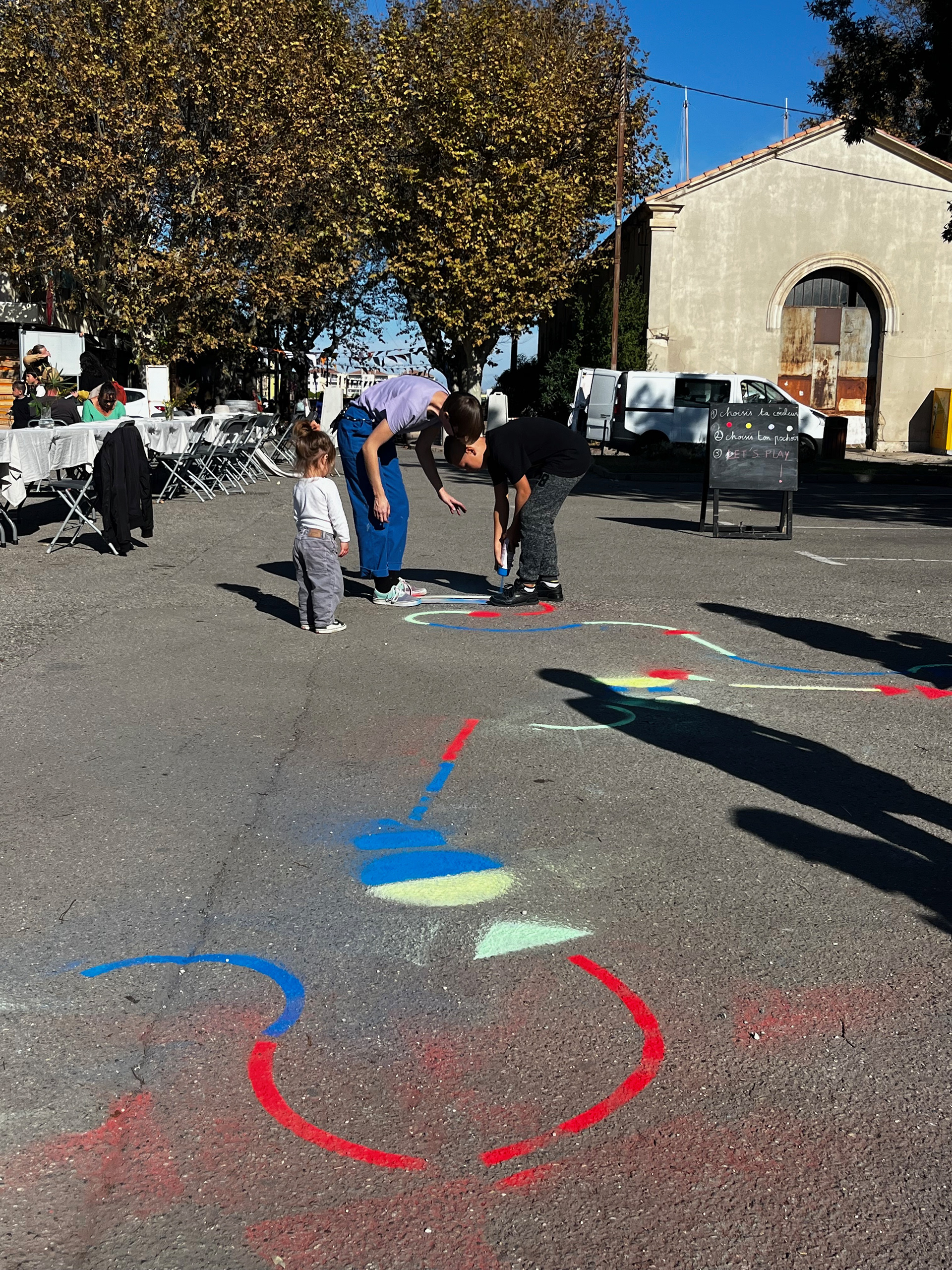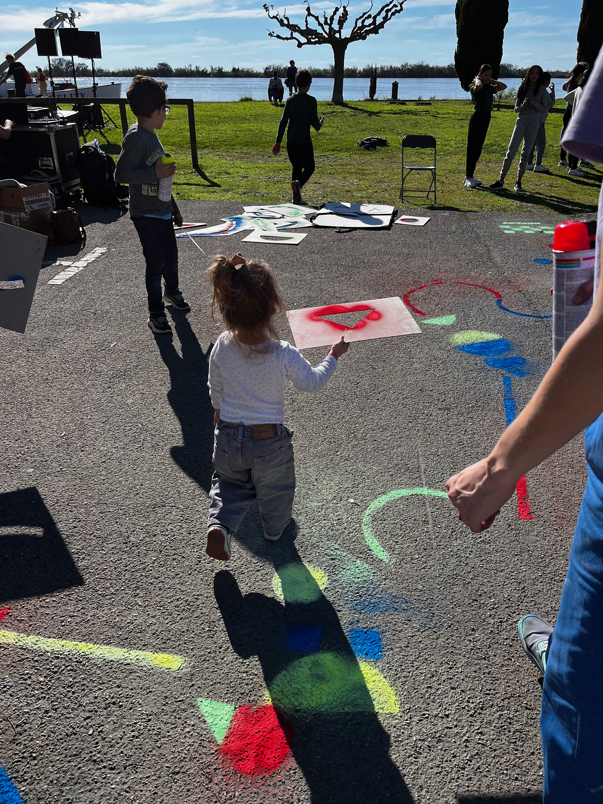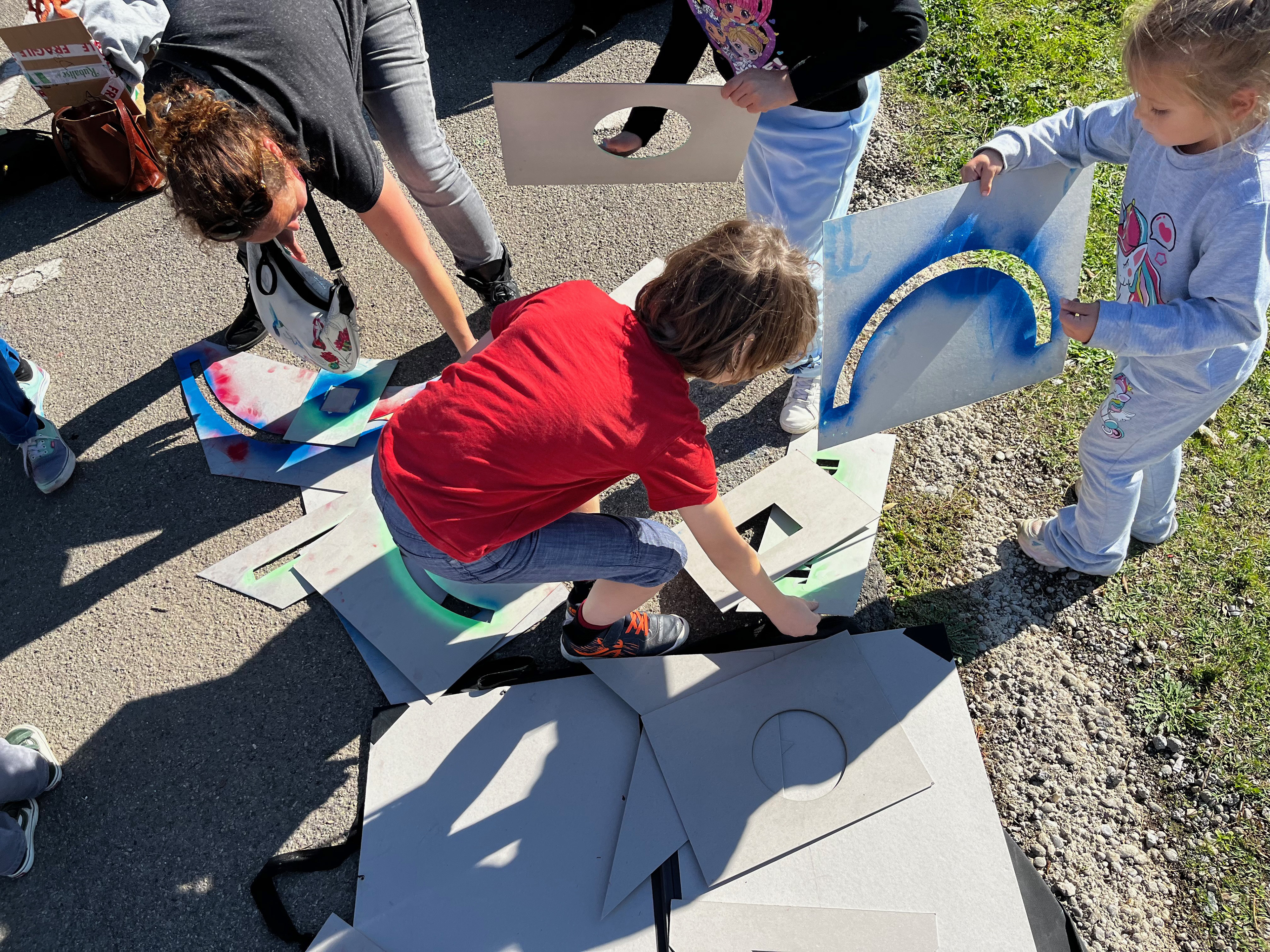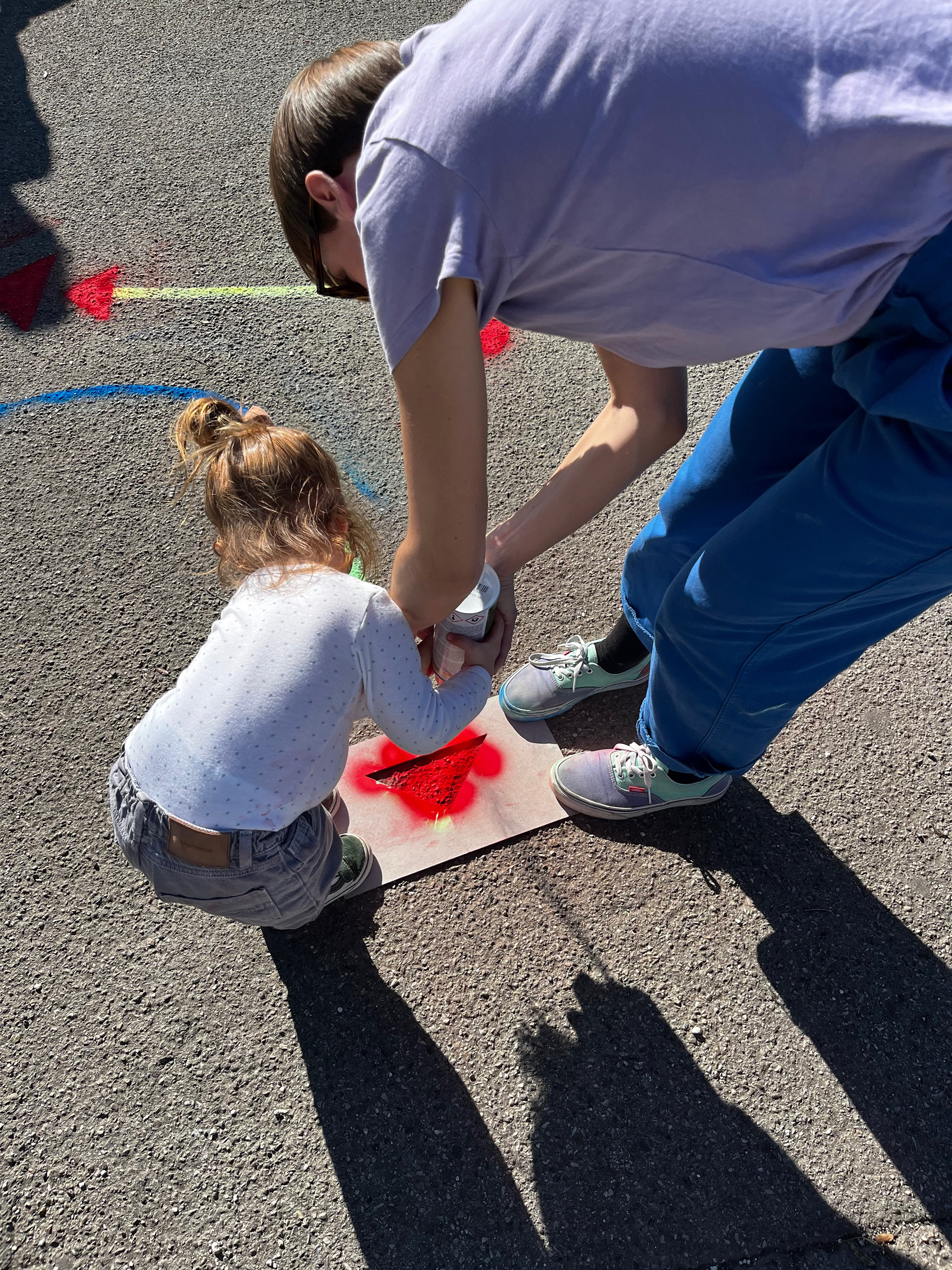 Stencils on the ground with spray paint
